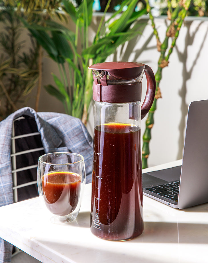 Allow it to steep overnight at room temperature. Or leave it in the fridge for 16-18 hours. The Hario Cold Brew carafe is made using heat-proof glass, so it withstands any temperature shocks.